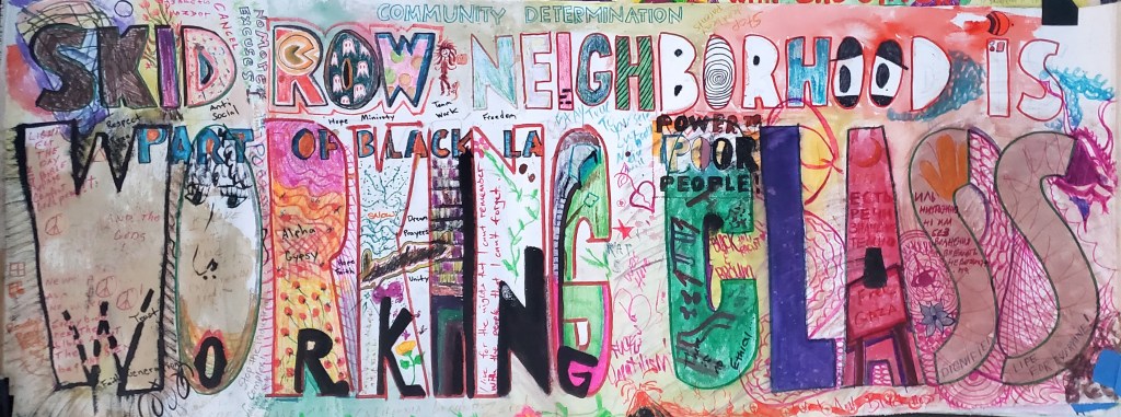 Image: Still unfinished “Skid Row neighborhood is Working Class” banner, Sept 2025