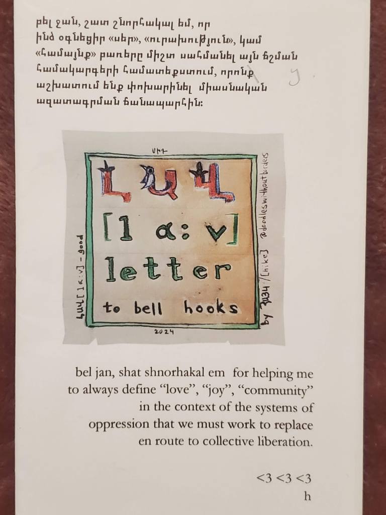2. ԼԱՎ [lav] Letter to bell hooks (ԼԱՎ [lav] – good) zine